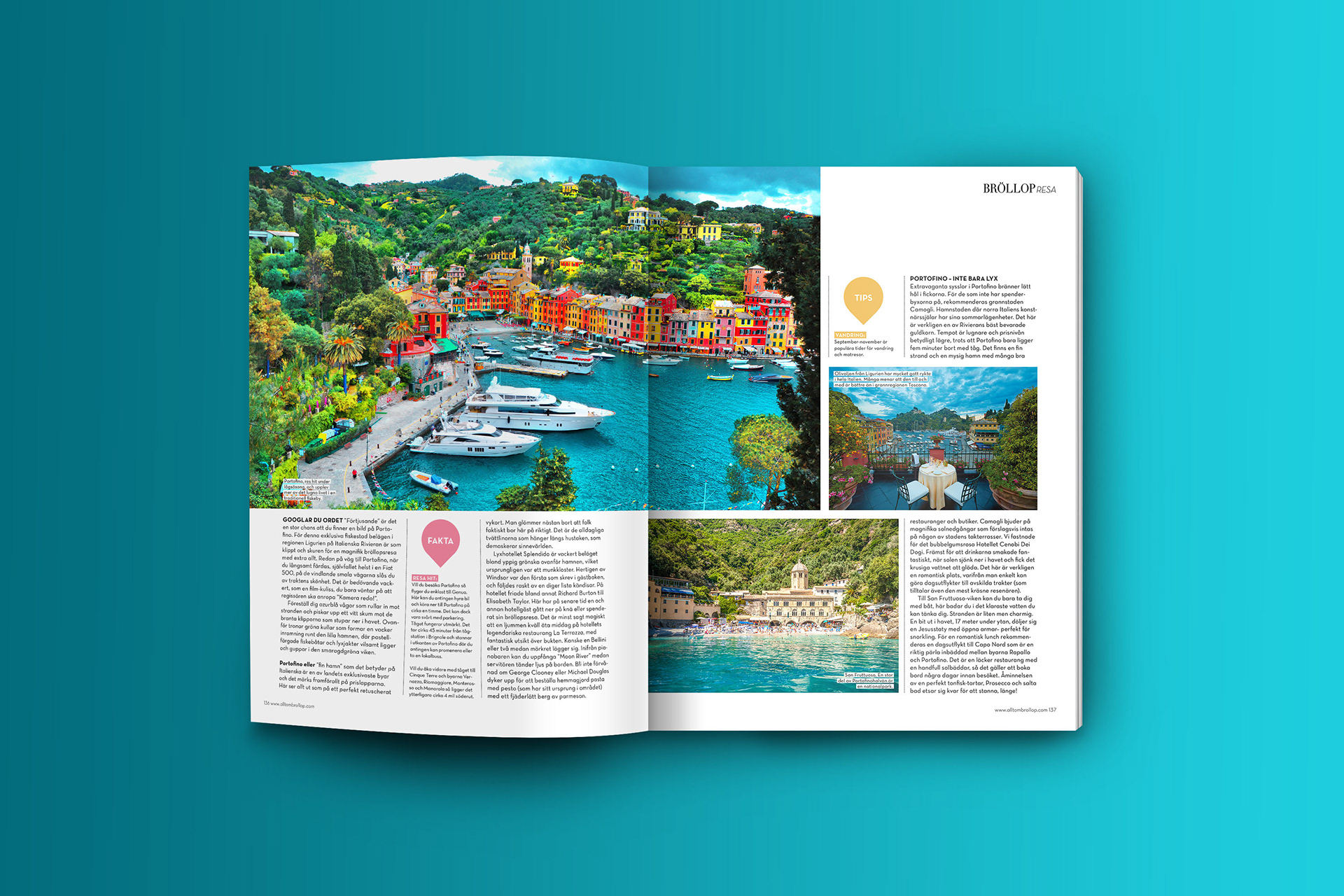 Formgivning av resereportage i tidningen Allt om Bröllop 3 2018.