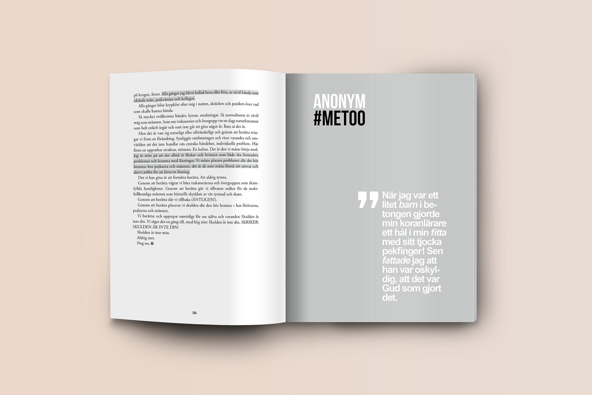 Formgivning av omslag och inlaga för boken Me too – Så går vi vidare.
